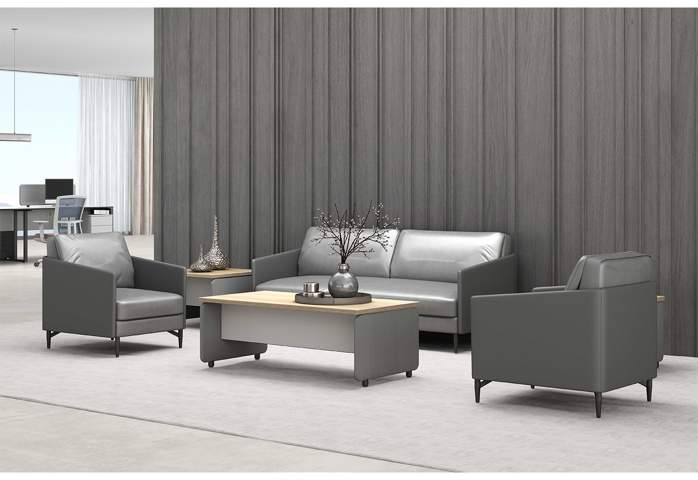 1.工藝:采用E0級刨花板貼三聚氰胺飾面 2.封邊:采用優(yōu)質(zhì)PVC封邊 3.細(xì)節(jié):灰色皮紋側(cè)腳;