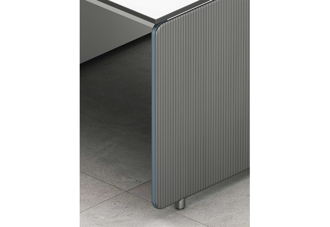 1.工藝:采用E0級刨花板貼三聚氰胺飾面 2.封邊:采用優質PVC封邊 3.細節:灰色皮紋側腳; 4.配件:“BMB”牌阻尼門鉸+“BMB”牌導軌+高端?80圓形過線盒+優質ABS圓柱形調節腳+優質ABS銀色橢圓活蓋線盒、主機散熱蓋; 5.走線:臺面配OP線蓋,柜內部走線,內配?80圓形過線盒;