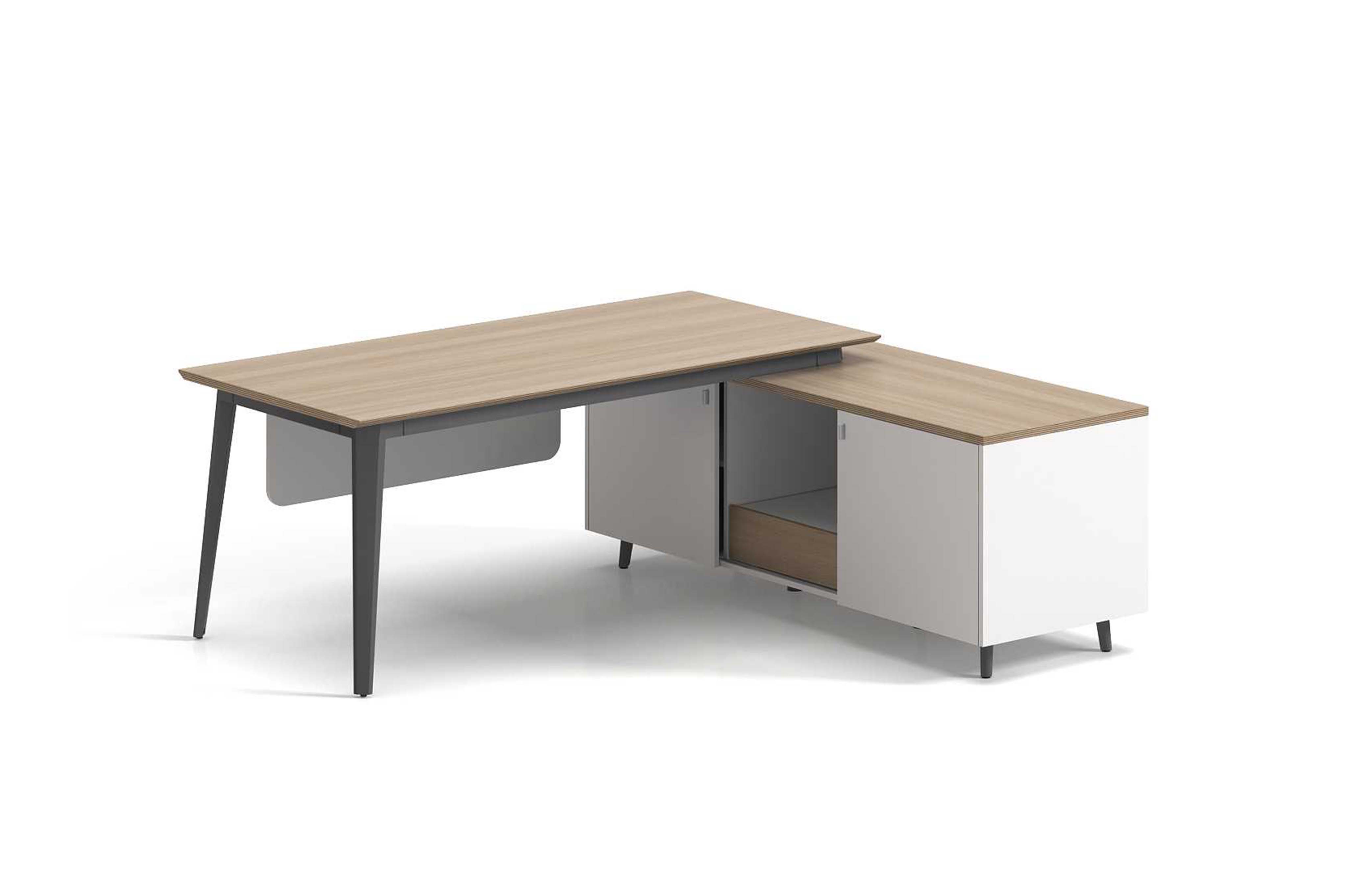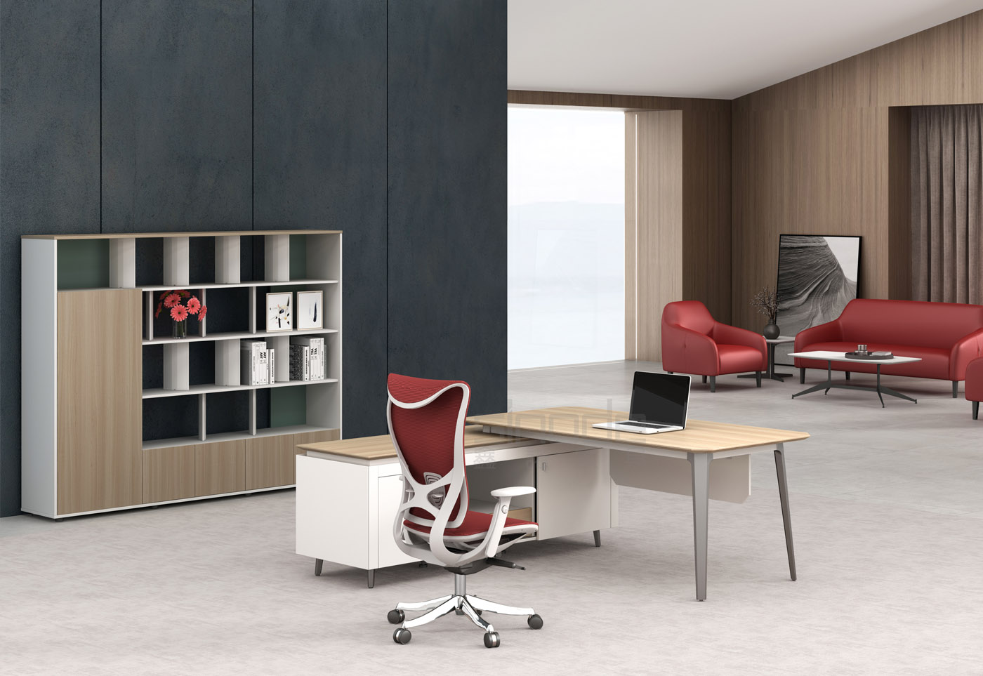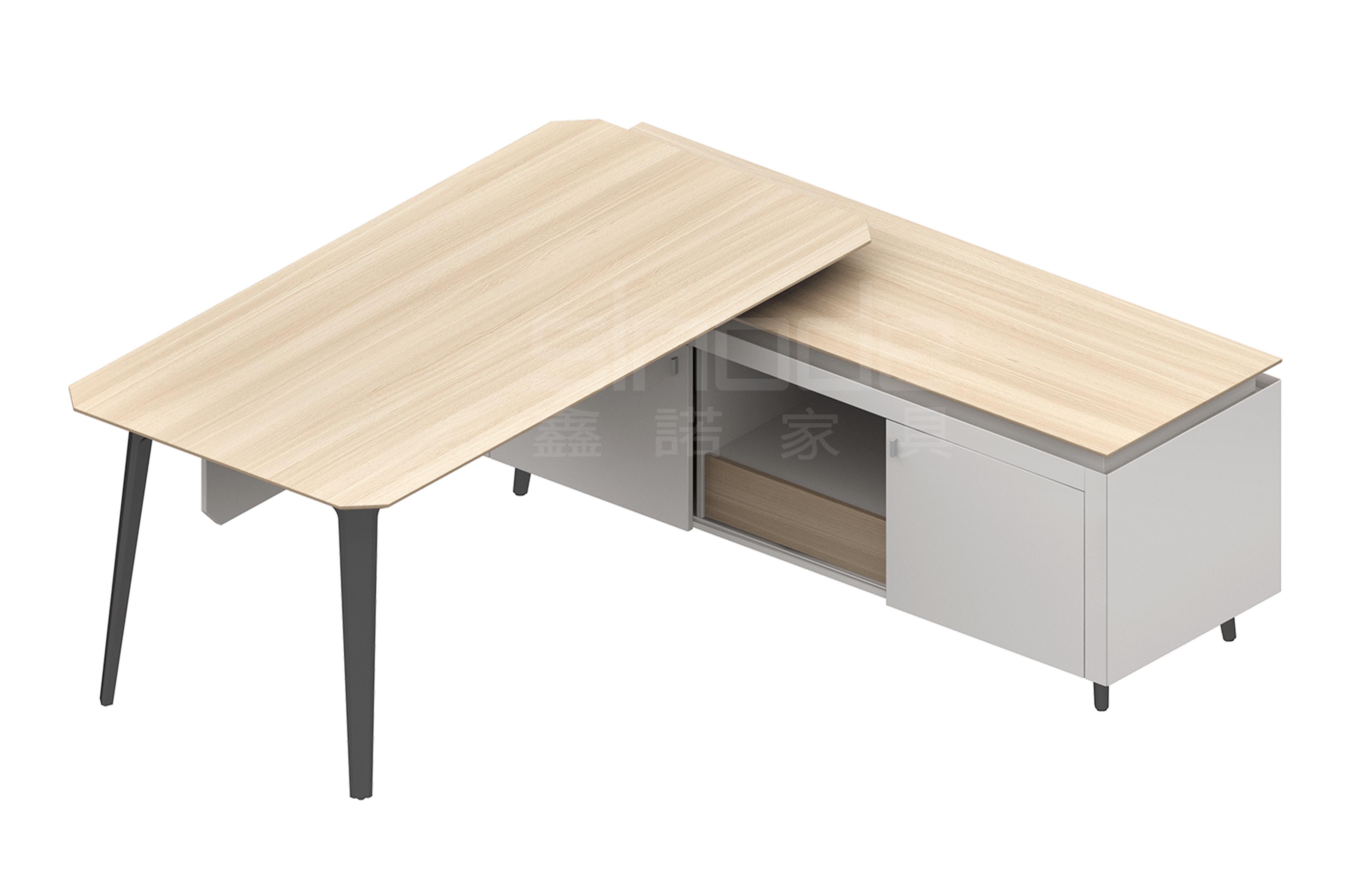 1.工藝:采用E0級刨花板貼三聚氰胺飾面 2.封邊:采用優質PVC封邊 3.五金:1.5mm壁厚鋼腳+1.6mm壁厚鋼制橫梁+鋼制副柜支撐腳; 4.配件:“BMB”牌導軌+高端趟門配件+鍍珍珠鉻色鉛筆拉手+鋅合金擋板夾+優質鋁合金散熱蓋; 5.走線:臺面配OP線蓋,副柜內部走線,內配?80圓形過線盒; 6.班臺分左右;