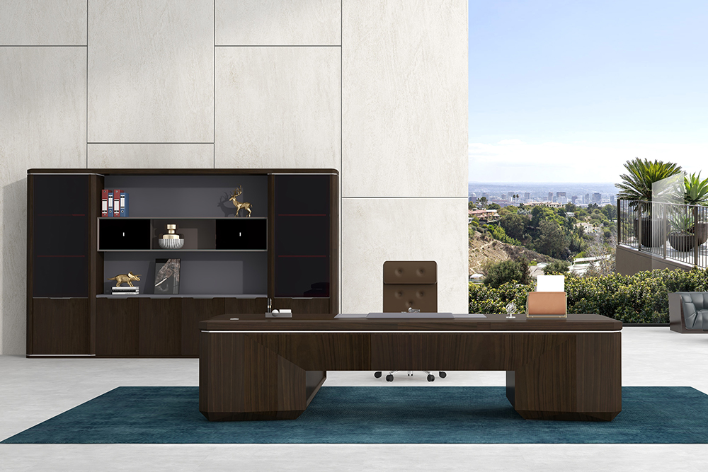 1.工藝:見光面采用E0級中密度纖維板+0.6mm天然木皮做水性漆/實色水性漆,非見光面采用E0級刨花板貼三聚氰胺飾面 2.封邊:見光面天然木皮封邊/實色水性漆,非見光面采用優質PVC封邊 3.配件:“BMB”牌 緩沖導軌+“BMB”牌 緩沖門鉸+機械密碼鎖 4.細節:臺面內嵌皮墊,桌面配活動實木線蓋; 5.走線:臺面配木雕刻線盒,底部配高端集成一體插座,副柜內部走線,內配?80圓形過線盒; 6.班臺分左右;