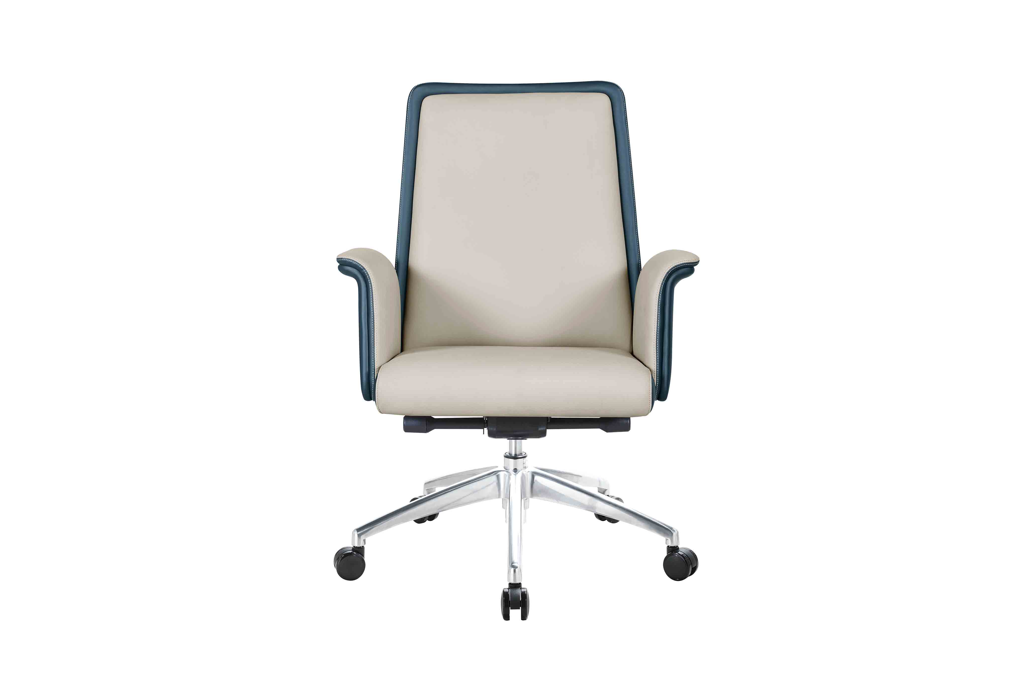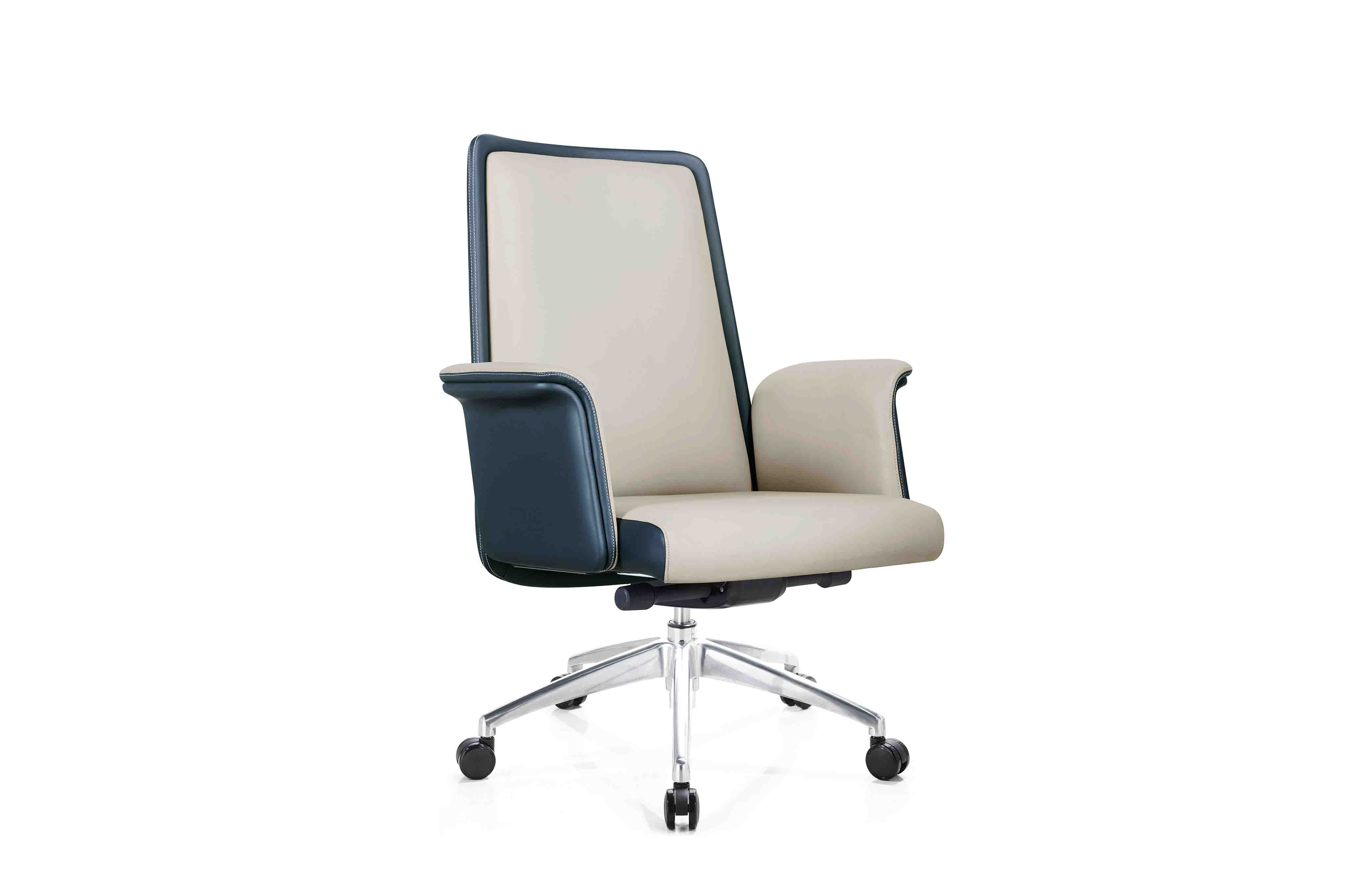 1.優質西皮/巴西進口優質黃牛皮飾面 2.9層木皮壓制而成的高密度夾板 3.40密度高彈力海綿 4.中泰豪華底盤 5.通過SGS認證三級電鍍氣壓棒 6.350#鋁合金高腳配?60PU靜音輪