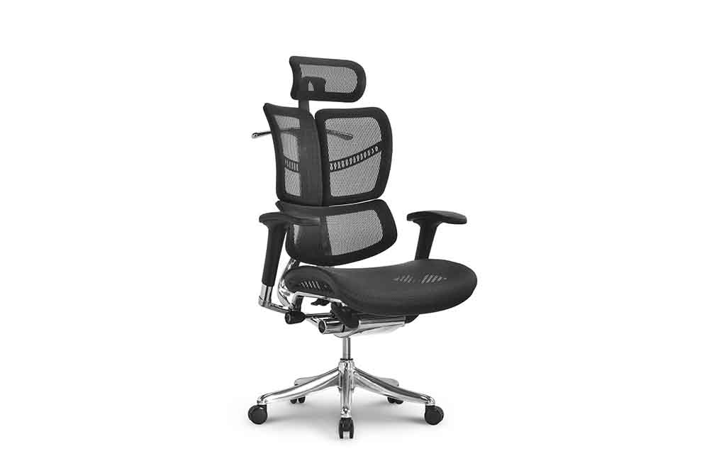 1.塑膠框架:黑色;有頭枕; 2.面料:優(yōu)質(zhì)進(jìn)口網(wǎng)布; 3.底盤(pán):自主研發(fā)鋁合金線控拋光; 4.氣壓棒:電鍍,韓國(guó)KGS/三弘品牌,100mm行程; 5.椅腳:EG鋁合金拋光; 6.滑輪:65mmPU; 7.大坐墊;PU01扶手;三個(gè)把手,角度鎖定;