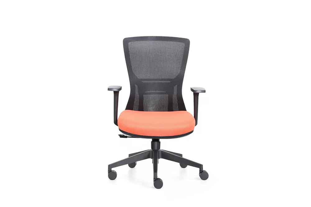 1.尼龍玻纖背框+調節腰靠 2.固定扶手,50密度定型海綿,14MM板材,PP座殼 3.1檔鎖定同步傾仰底盤,優質氣壓棒 4.尼龍五星腳,60mm尼龍腳輪