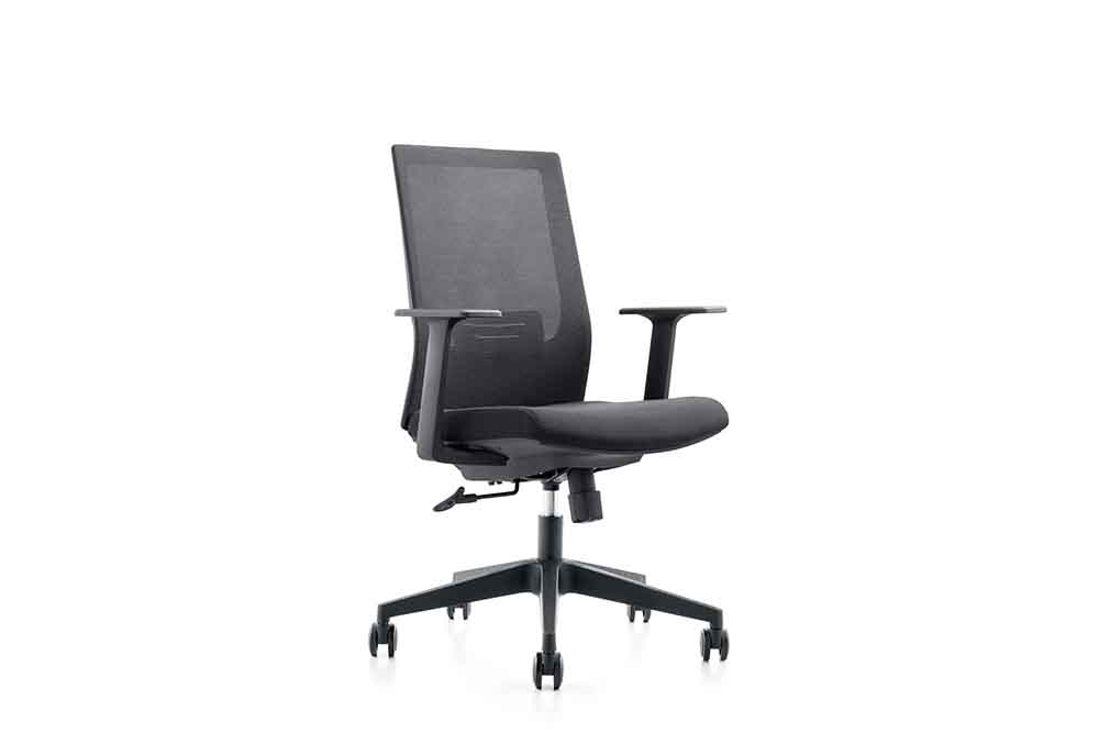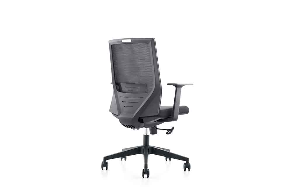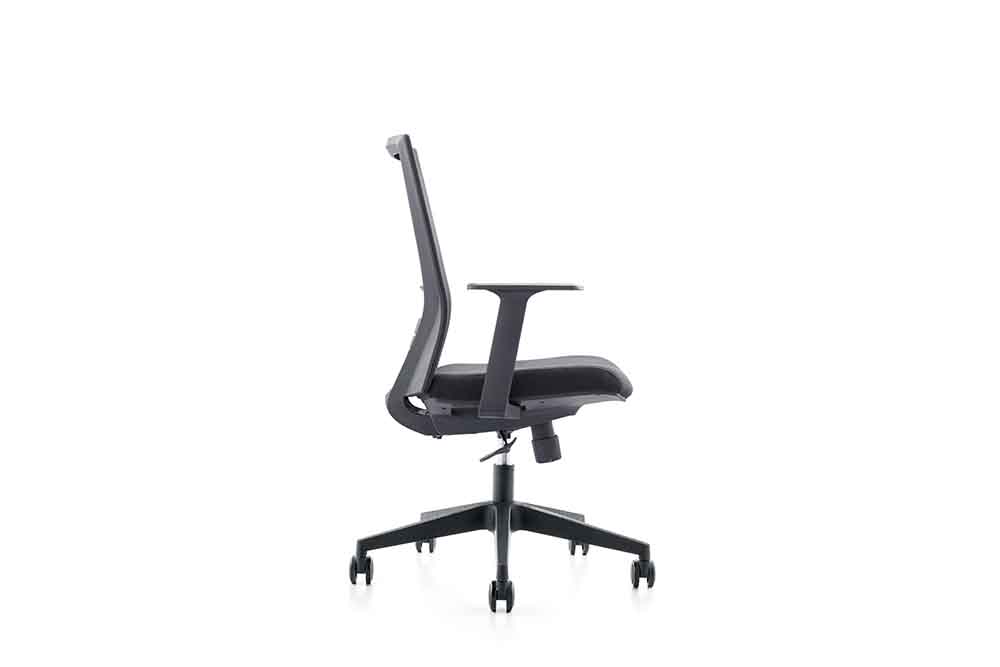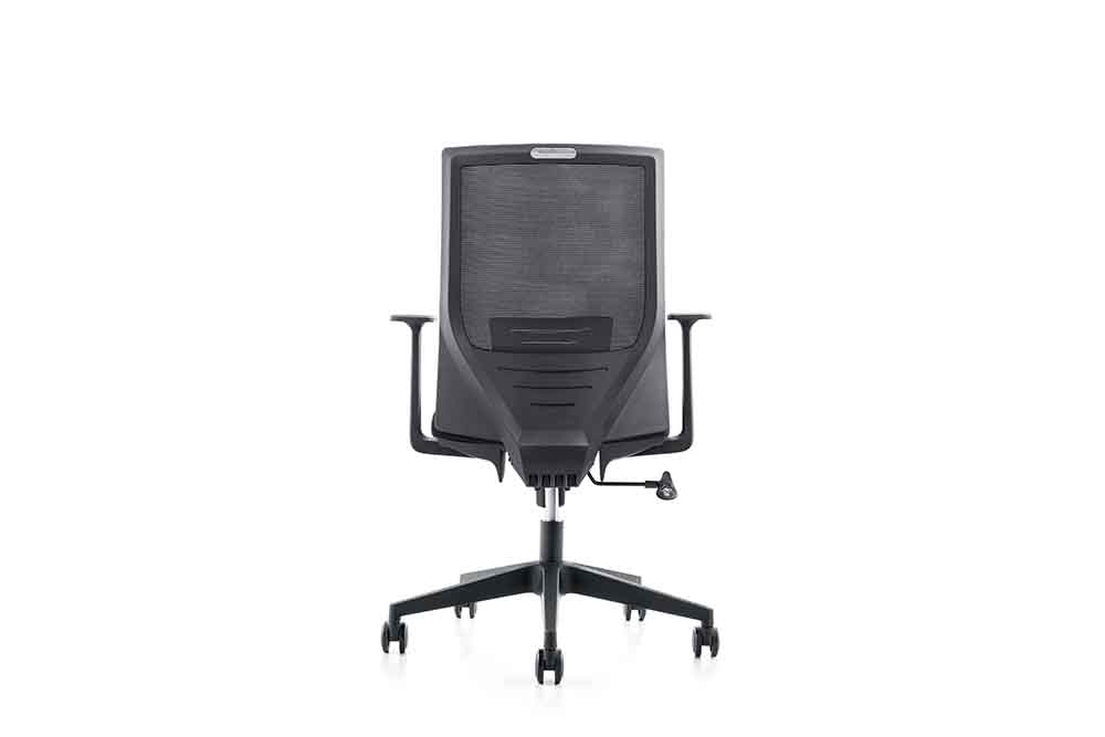 1.黑色PP固定扶手 2.黑色PP加玻纖背架 3.座包采用40#高彈力海綿 4.配中班蝴蝶底盤,帶原位鎖定功能 5.100沉口7CM黑色氣桿 6.320mm黑色尼龍五星腳 7.?50mm黑色耐磨尼龍輪