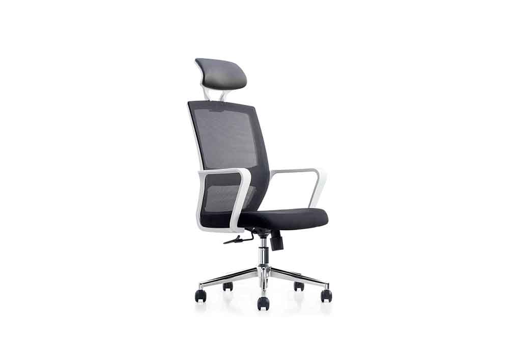 1.布面頭枕 2.白色PP固定扶手 3.白色PP加玻纖背架 4.座包采用40#高彈力海綿 5.配中班蝴蝶底盤,帶原位鎖定功能 6.固定扶手連接椅背和椅座(不車線),自動逍遙貼背功能 7.100沉口7CM電鍍氣桿 8.320mm電鍍五星腳 9.?50mm黑色耐磨尼龍輪