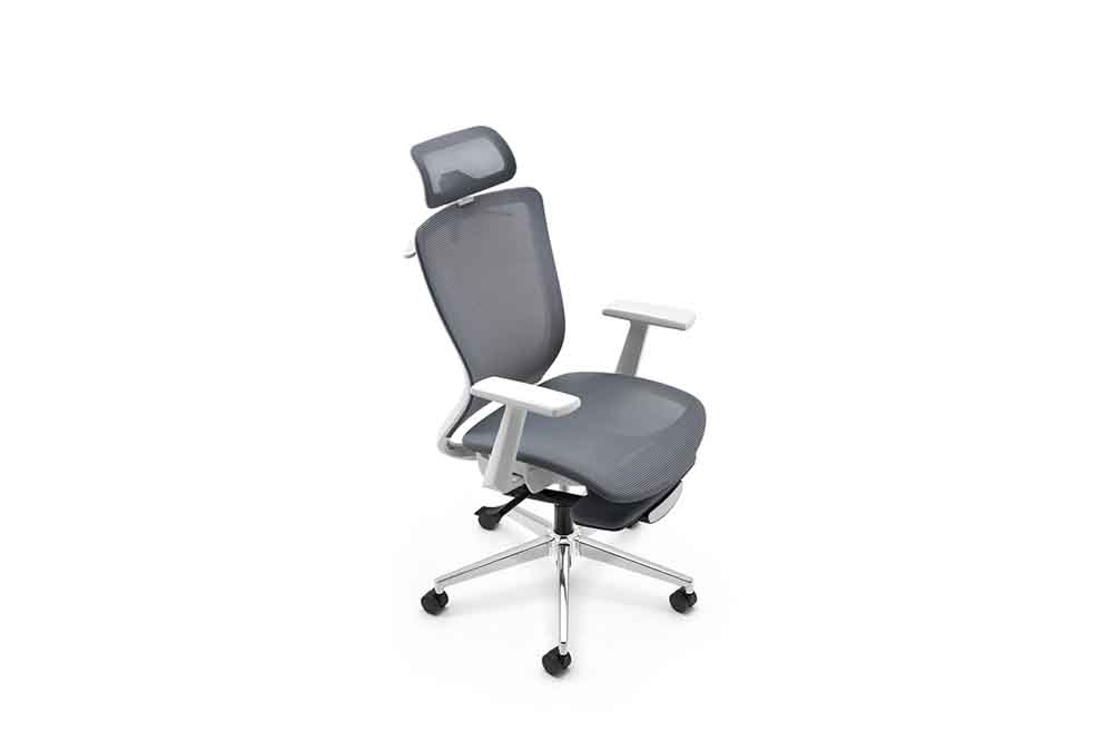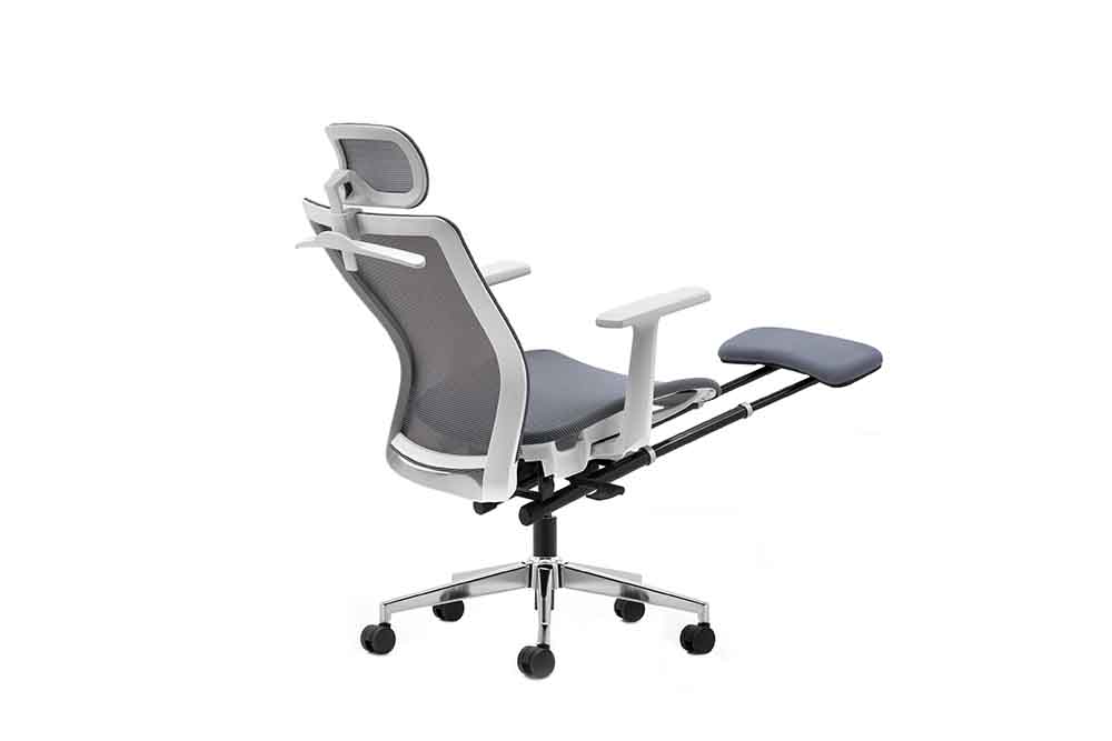 1.大頭枕可升降和旋轉調節 2.頭枕、背和座采用韓國進口特級網 3.WS-02固定PP扶手 4.分體傾仰三段鎖定底盤 5.可調節長度腳踏,配軟包墊 6.100mm行程黑色四級氣桿 7.350mm高級電鍍腳 8.60mm防震PU輪