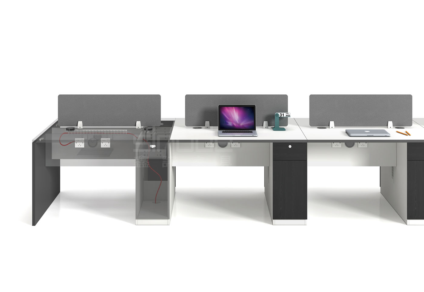 1.工藝:采用E0級刨花板貼三聚氰胺飾面; 2.封邊:采用優(yōu)質PVC封邊; 3.側板:SN17 寶石灰三胺板側腳; 4.配件:優(yōu)質門鉸+優(yōu)質三節(jié)導軌+?80圓形過線蓋+優(yōu)質鎖+優(yōu)質鋁合金散熱蓋+卡米拉桌屏;