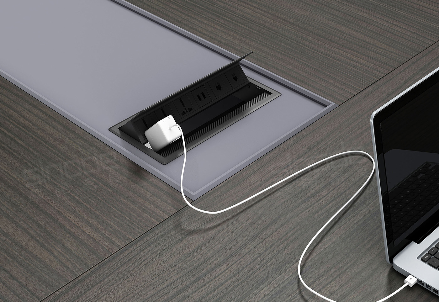 1.工藝:見光面采用E0級中密度纖維板+0.6mm天然木皮做水性漆,不見光面采用E0級刨花板貼三聚氰胺飾面; 2.封邊:見光面天然木皮封邊,非見光面采用優質PVC封邊; 3.配件:臺面配翻蓋集成電源