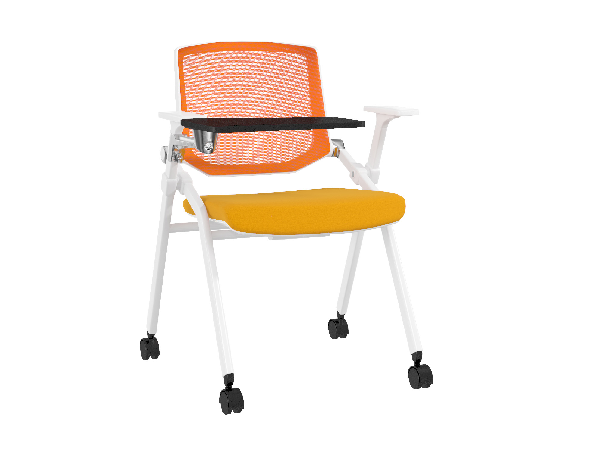 1:椅架:椅架圓方管32.3*19.2*1.3厚冷鍛鋼管,采用特殊工藝制成冷軋無縫鋼管顏色有黑,白2種選擇。 2:座背膠殼:進口聚丙烯PP塑膠,質地輕,網背2種選擇 3:連接結構:靠背鋁合金連接件,類似圓柱形鋁合金形狀,椅子可全折疊 4:座墊:采用65mm定型海棉,座墊顏色可定制,可翻起方便收納排放,承重150KG。 5:網背:達曼透氣中網靠背,座墊用高密度純海棉, 6:扶手:進口聚丙烯PP塑膠扶手,可前后滑動。