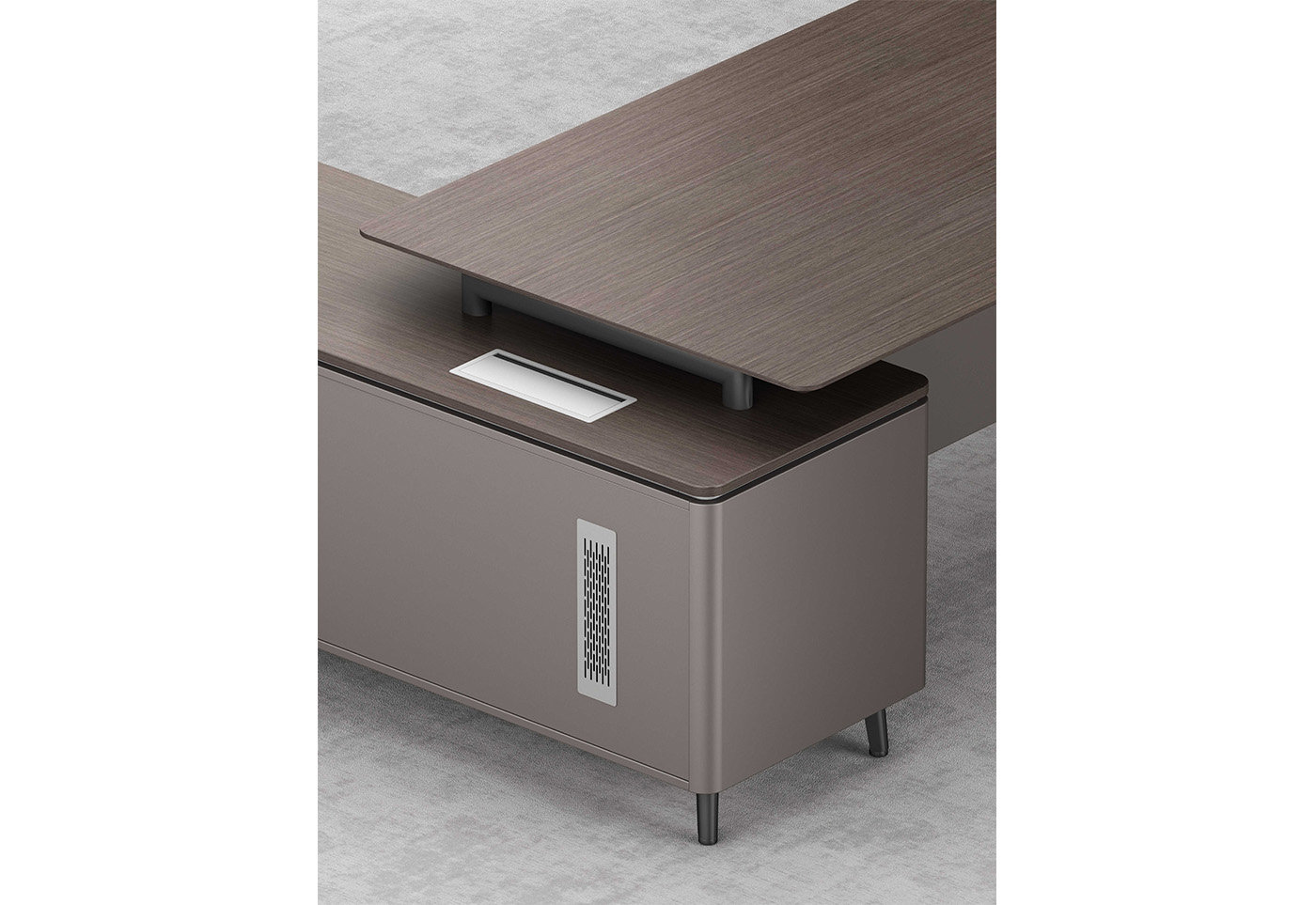 1.工藝:見光面采用E0級中密度纖維板+0.6mm天然木皮做水性漆/實色水性漆,非見光面采用E0級刨花板貼三聚氰胺飾面 2.封邊:見光面天然木皮封邊/實色水性漆,非見光面采用優(yōu)質(zhì)PVC封邊 3.五金:鋁合金壓鑄腳+鋼制支撐架; 4.配件:鋁合金散熱蓋+“BMB”牌阻尼導(dǎo)軌+“BMB”牌緩沖門鉸+優(yōu)質(zhì)鋁合金翻蓋線盒+圓形密碼鎖;