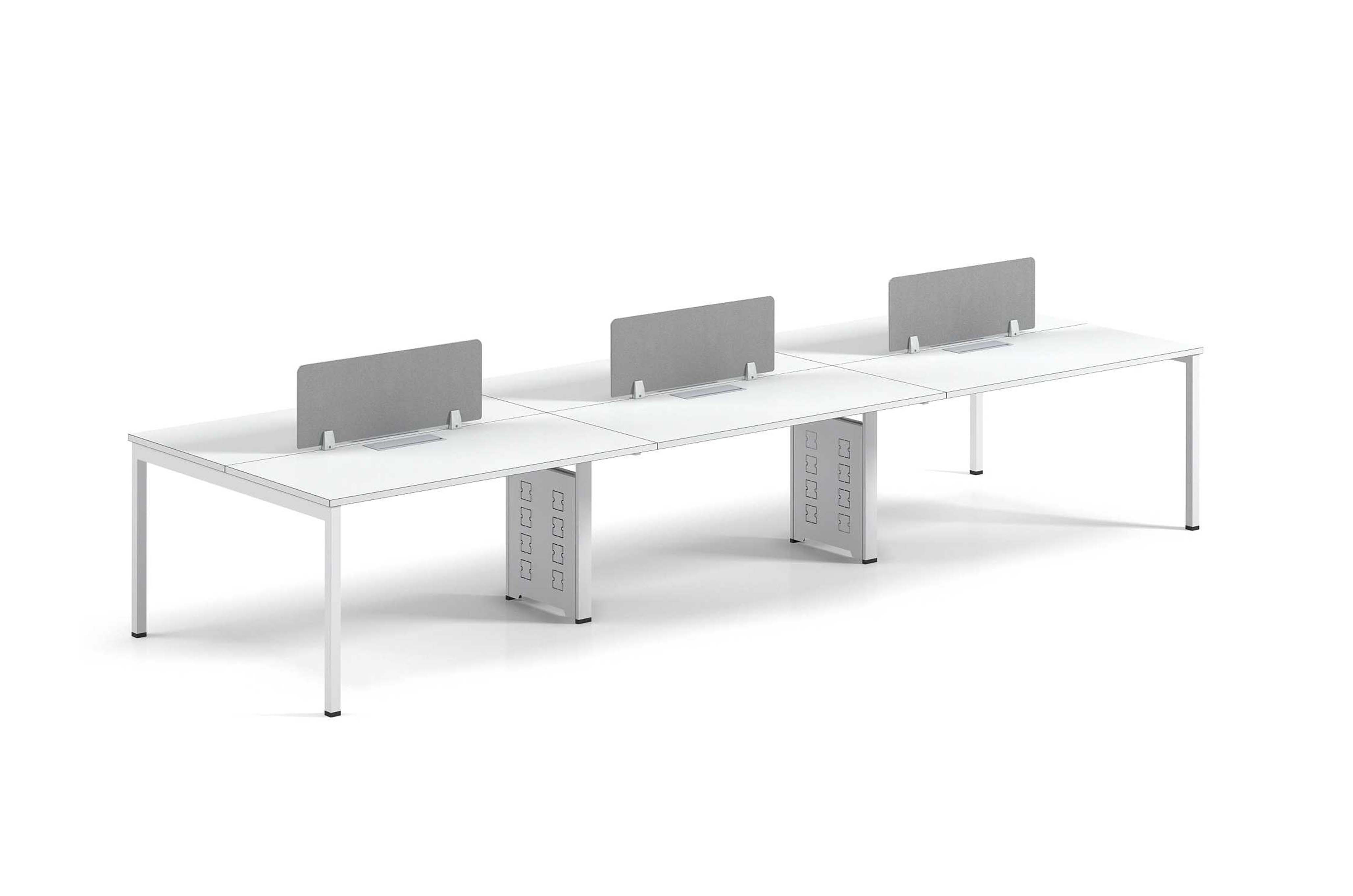 1.工藝:采用E0級刨花板貼三聚氰胺飾面 2.封邊:采用優質PVC封邊,臺面黑白雙色封邊 3.五金:1.5mm壁厚優質鋼制支撐腳+1.2mm壁厚優質鋼制橫梁+1.5mm壁厚上線腳+卡米拉桌屏; 4.走線:臺面配OP線蓋; 5.選配:可選配BO雙邊公用底盒、BBA底盒;