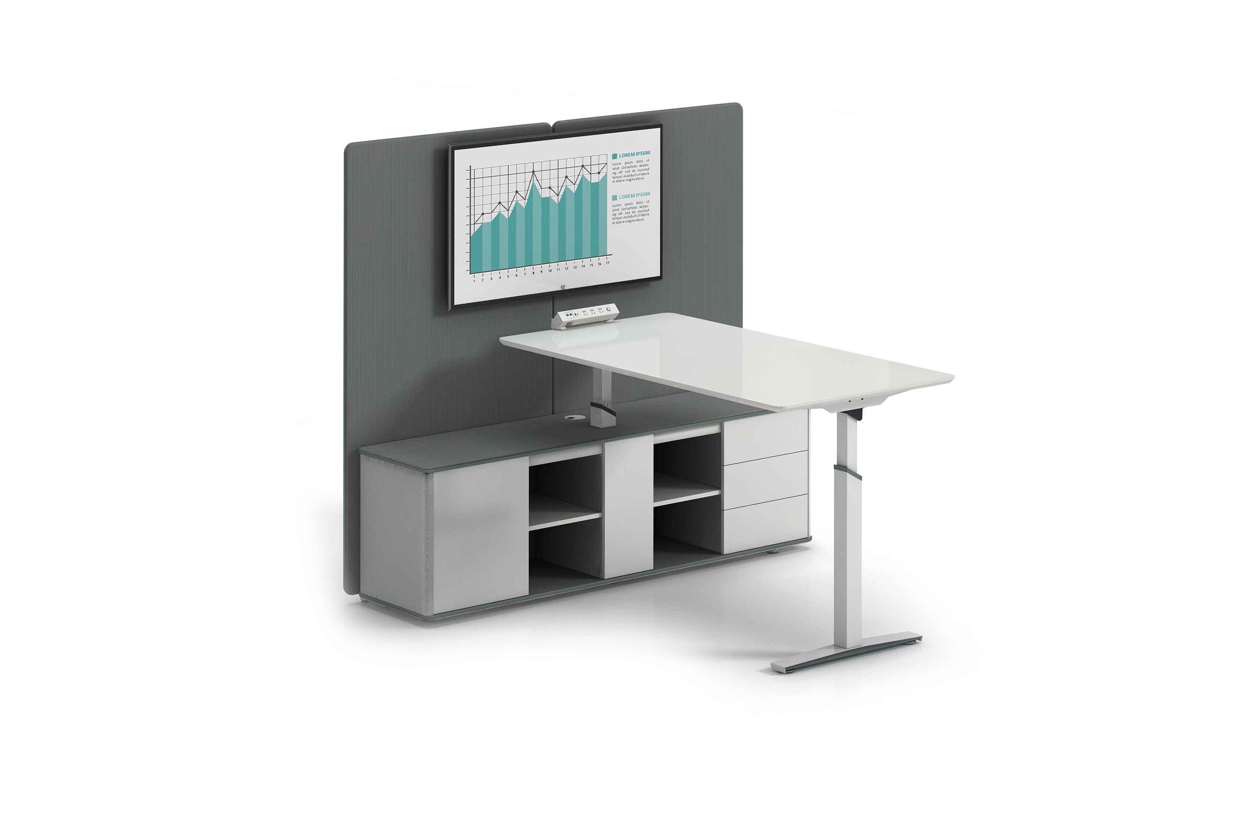 1.工藝:E0級中密度纖維板+做實色水性漆,其余采用E0級刨花板貼三聚氰胺飾面 2.封邊:實色水性漆、優質PVC封邊 3.細節:副柜臺面灰色捫皮,優質膠條封邊 4;五金:雙電機升降桌腳,四檔高度記憶,遇阻回退功能,配三通彈簧線; 5.配件:“BMB”阻尼門鉸+“BMB”緩沖三節導軌+鋅合金擋板夾+智能密碼鎖+優質ABS腳墊; 6.臺面配大白雙面六插電源,副柜內部走線,配?60圓形過線盒;