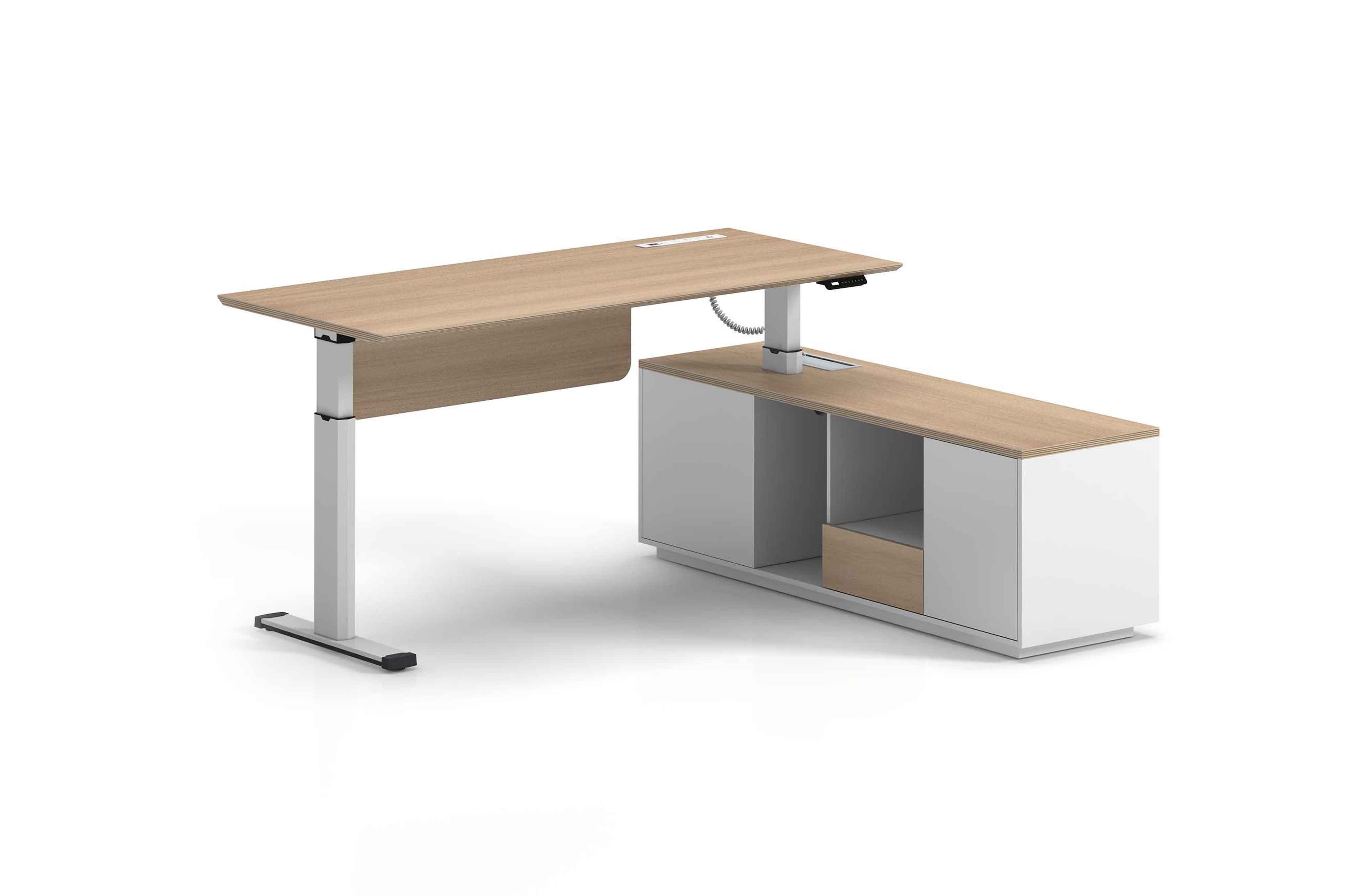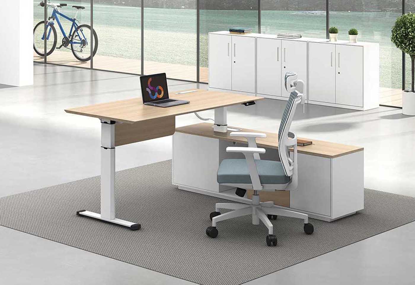 1.工藝:采用E0級刨花板貼三聚氰胺飾面 2.封邊:采用優質PVC封邊 3.五金:雙電機升降桌腳,四檔高度記憶,遇阻回退功能,配三通彈簧線; 4.配件:“BMB”阻尼門鉸+“BMB”緩沖三節導軌+鋅合金擋板夾+智能密碼鎖; 5.臺面配大白雙面六插電源,副柜內部走線,配OH線蓋; 7.選配:可選配BBA、BN底盒;