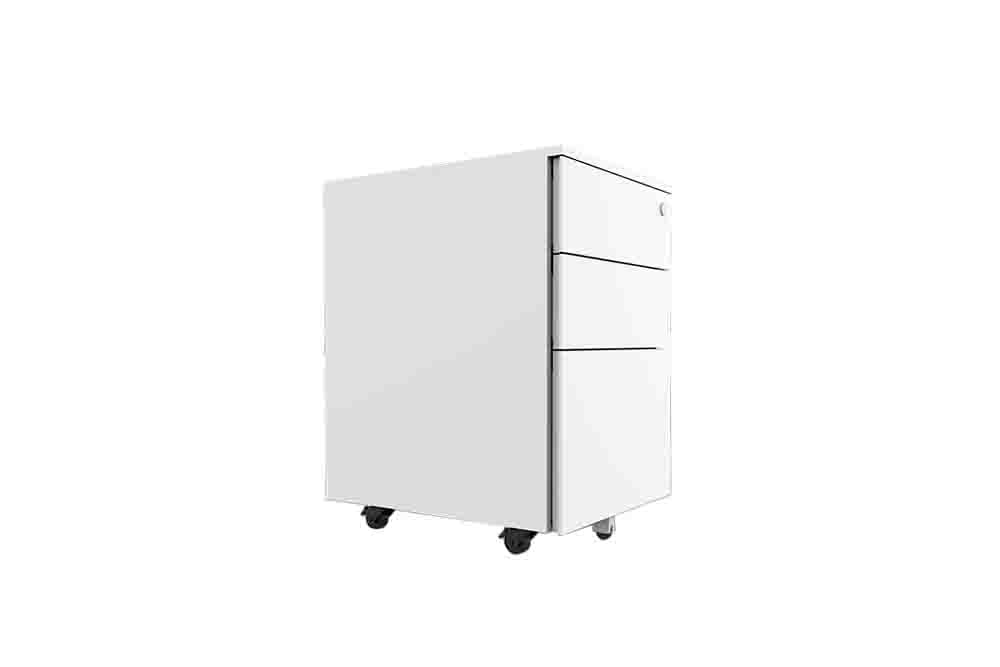 1.基材:采用0.8mm壁厚冷軋鋼板+12mm窄邊柜體; 2.面材:靜電粉末噴涂; 3.配件:抽屜內用筆盒+抽屜內用插板+“BMB"三節導軌+優質抽屜鎖+優質活動靜音輪